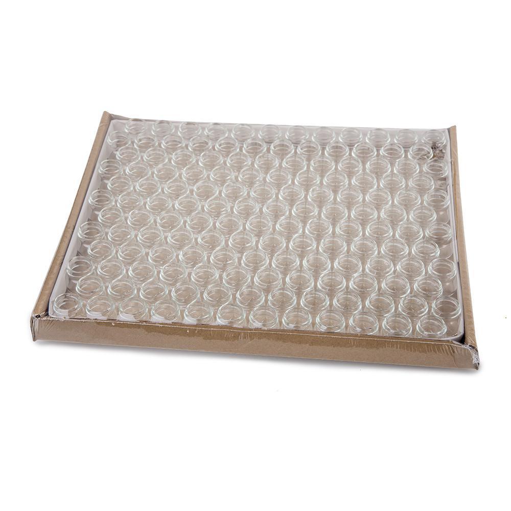 5 ML Clear Heat-Resistant Borosilicate Glass Container. High Quality product for showcasing and storing concentrates and oils in an elegant manner. The screw on air tight design makes this product smell proof and water resistant. To open glass container push down and turn cap. Keep your concentrates safe, secured and out of sight in the hygienic high quality borosilicate glass bottle. Box contains 144 count clear glass containers and screw on top caps.