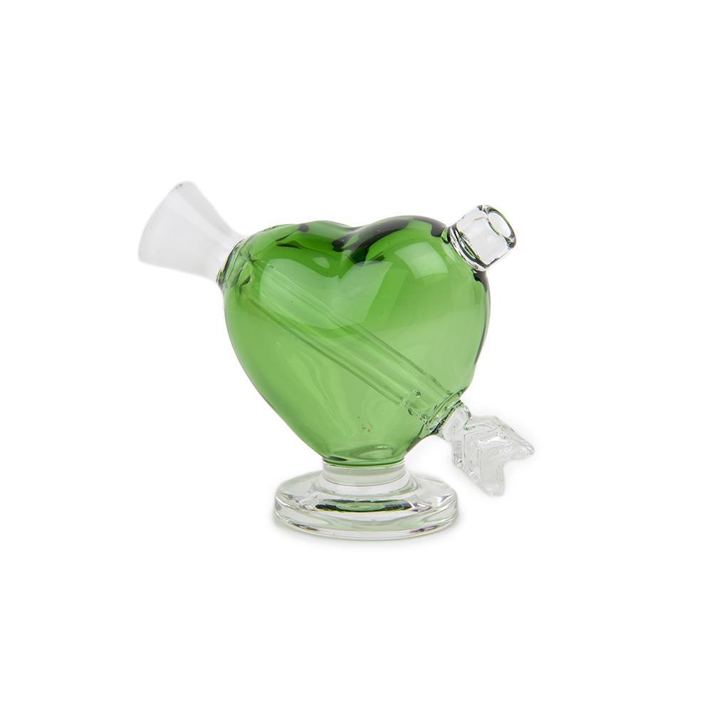 We’ve designed something special for you and yours this romantic holiday season, the heart-shaped love bubbler, “Cupid”. Made from Rose or Green colored borosilicate glass in a classic arrow-through-the-heart styling. The Cupid bubbler features a double-slit percolator carved into a unique, double-reinforced arrow downstem. This not only provides a unique aesthetic, it fortifies the interior glass elements as well to keep your love affair with this bubbler as more than just a “fling”.