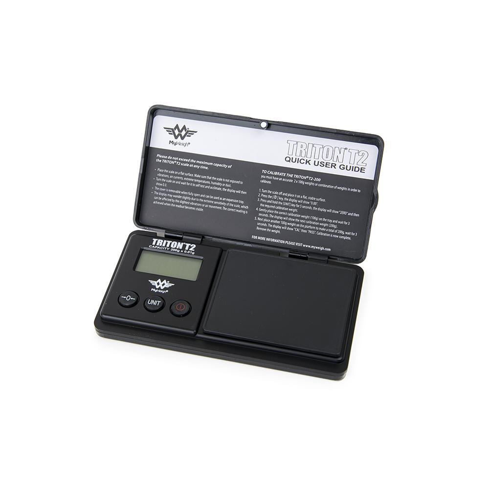 Digital pocket scales in the Triton T2 series from MyWeigh offer durability, accuracy, and reliability in a classic design. This Triton T2 has a weight capacity of 200 grams with precision up to 0.01 grams, making it the most precise in the series. Its large protective hinged cover can be removed and used to as a convenient expansion tray. Powered by AAA batteries, the backlit digital display makes reading weights in Grams, Ounces, Troy Ounces, and Pennyweight easy.